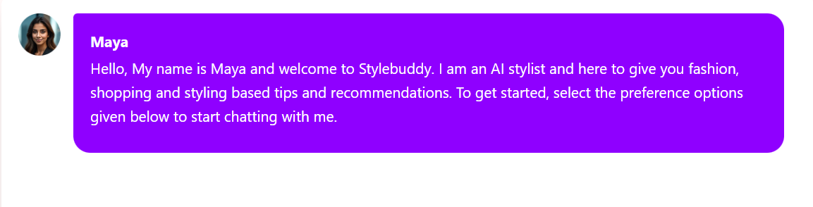 At the heart of StyleBuddy.ai is Maya, your personal AI styling chatbot.